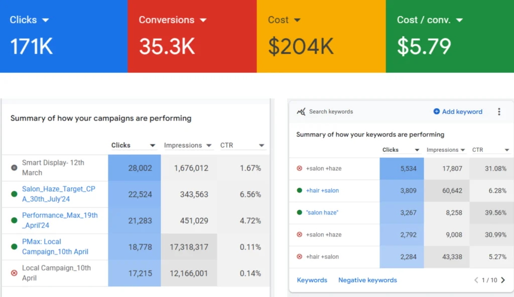 Salon Haze’s Paid Search Success: